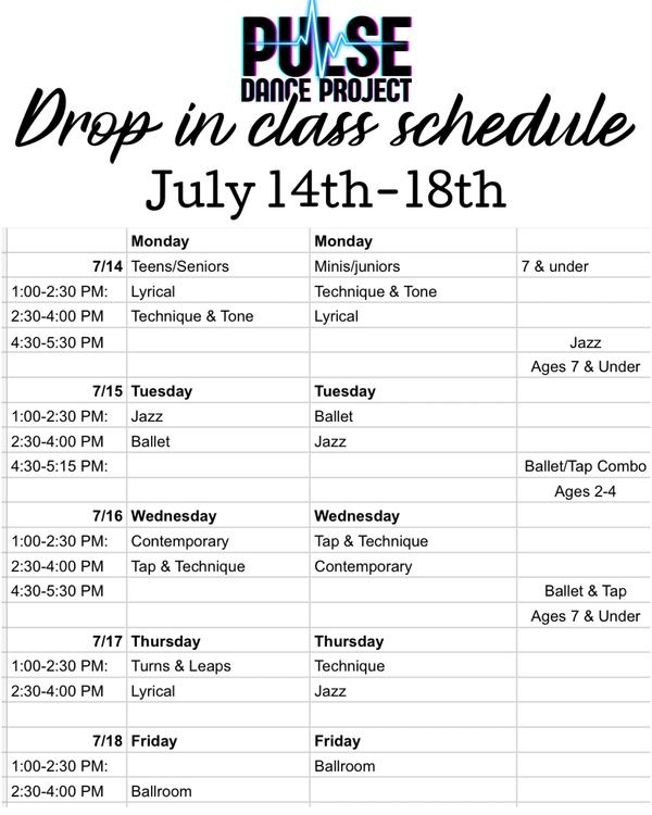 Full Week Registration: $150 for Mini/Jr & Teen/Senior classes